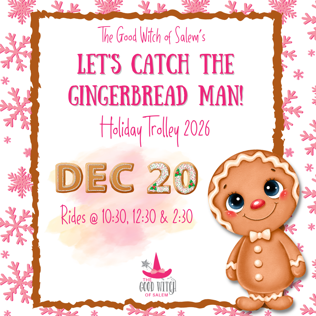 Join the Good Witch of Salem on a quest to find the Gingerbread Man aboard the Holiday Trolley! The race through downtown Salem will begin at The Good Witch of Salem’s shop with a story time all about the Gingerbread Man!