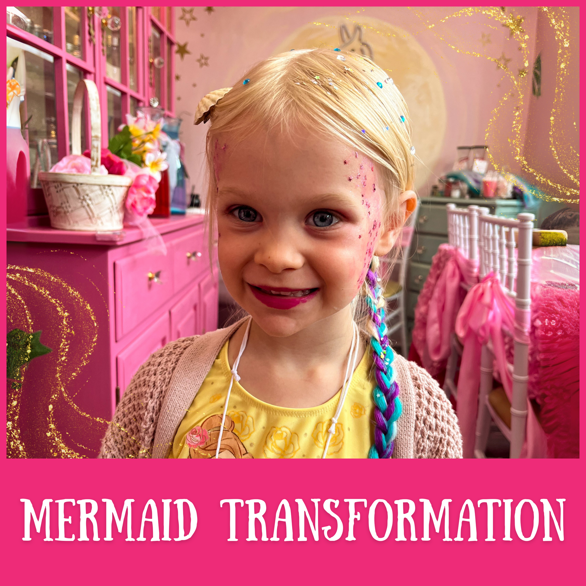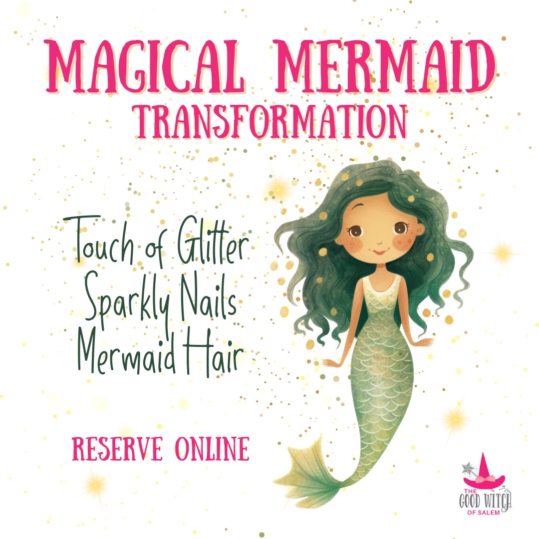 - The Witch Apprentice will transform your child into a Magical Mermaid and adorn your child with a touch of glitter and glitz, mermaid makeup, and pink lips.